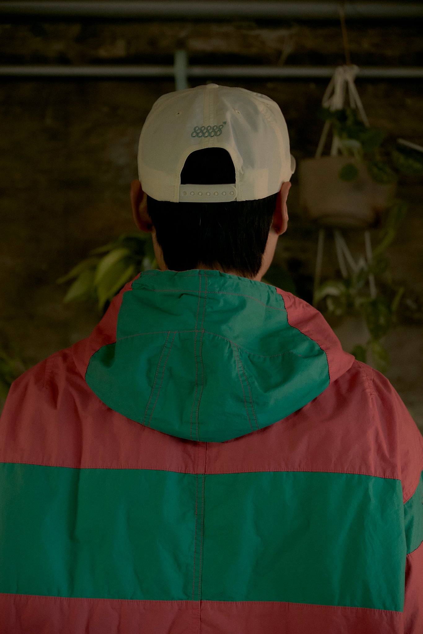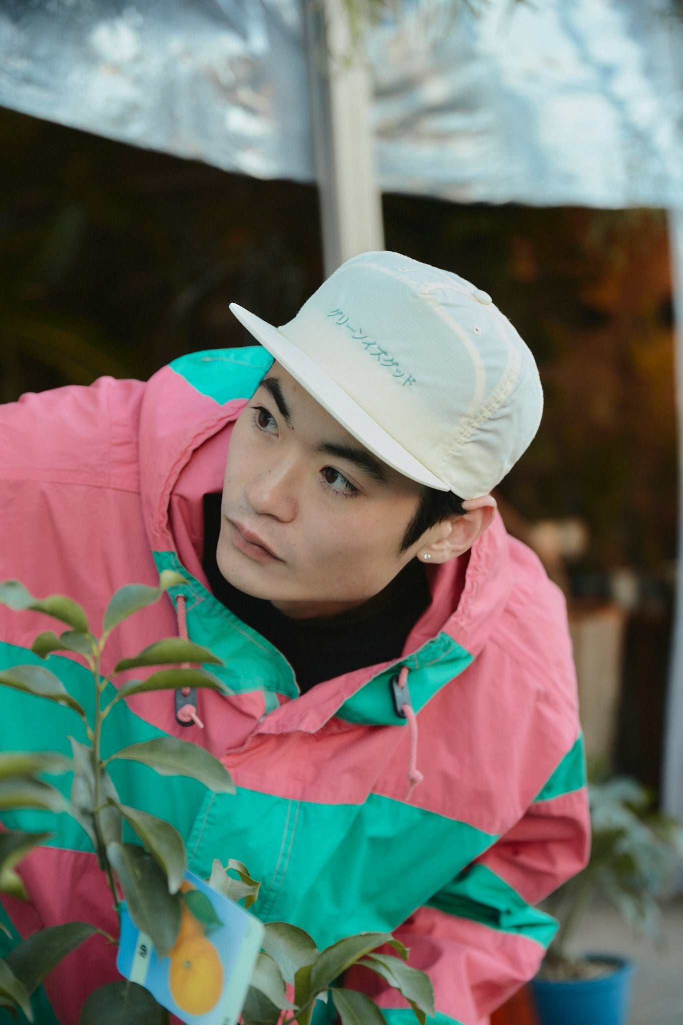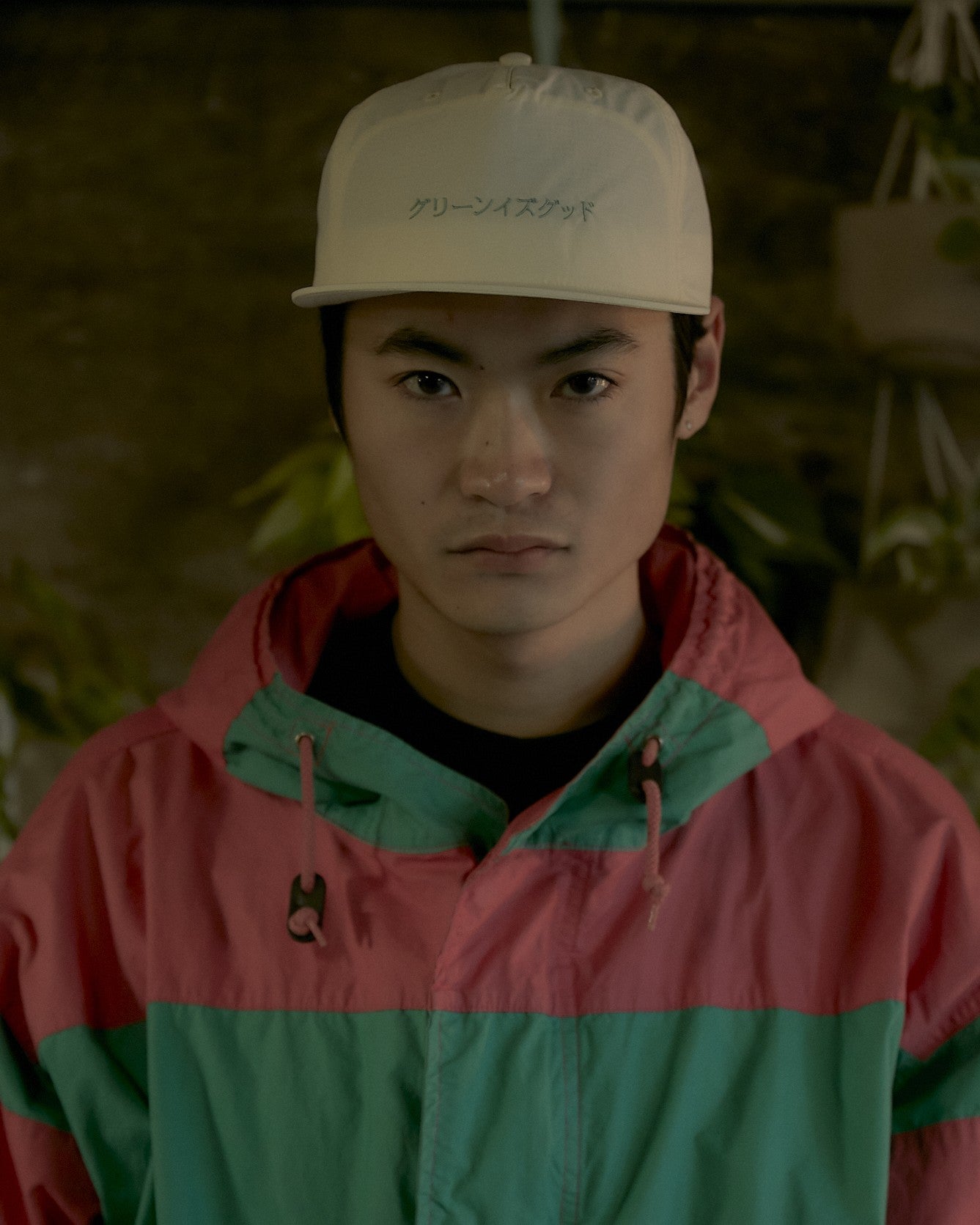 ”グリーンイズグッド”観葉植物が好きだ。私の部屋は植物だらけである。東京、駒沢大学にある観葉植物と古着のお店「SCENE」でオープン前に撮影をさせて頂いた。ボディはascolorの伝統モデルサーフキャップ。アイボリーにねずみ色の刺繍で合わせています。クレイジーパターンのジャケットは、ビンテージのL.L.Bean製、Rainbow Lake Jacket。