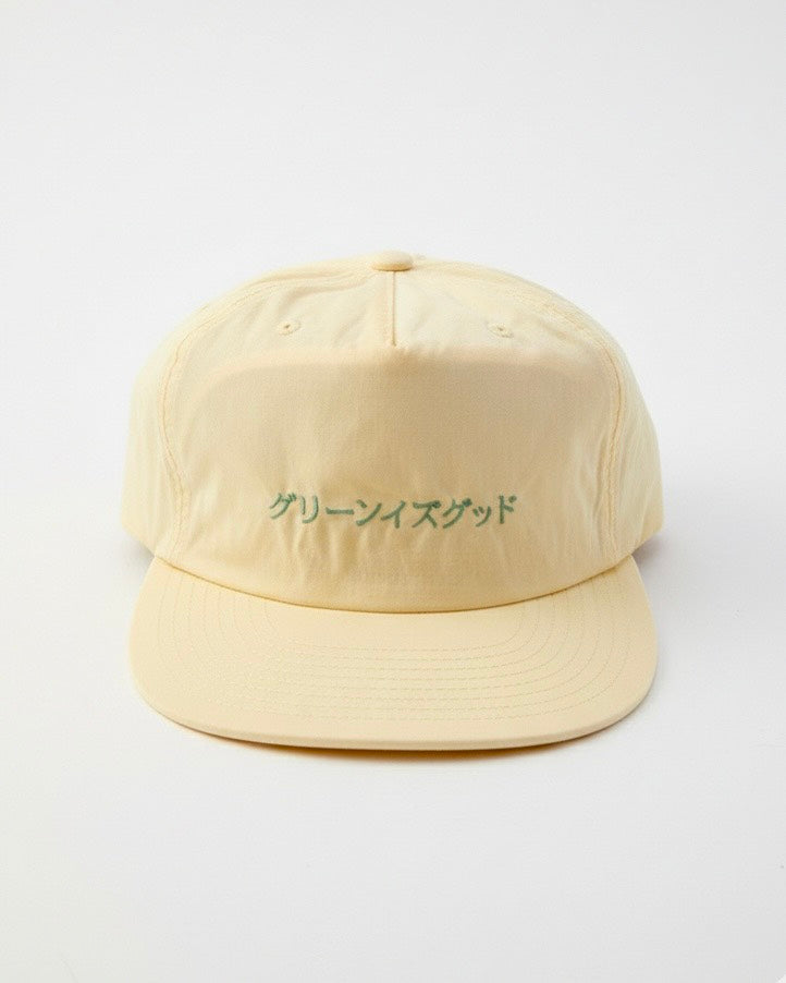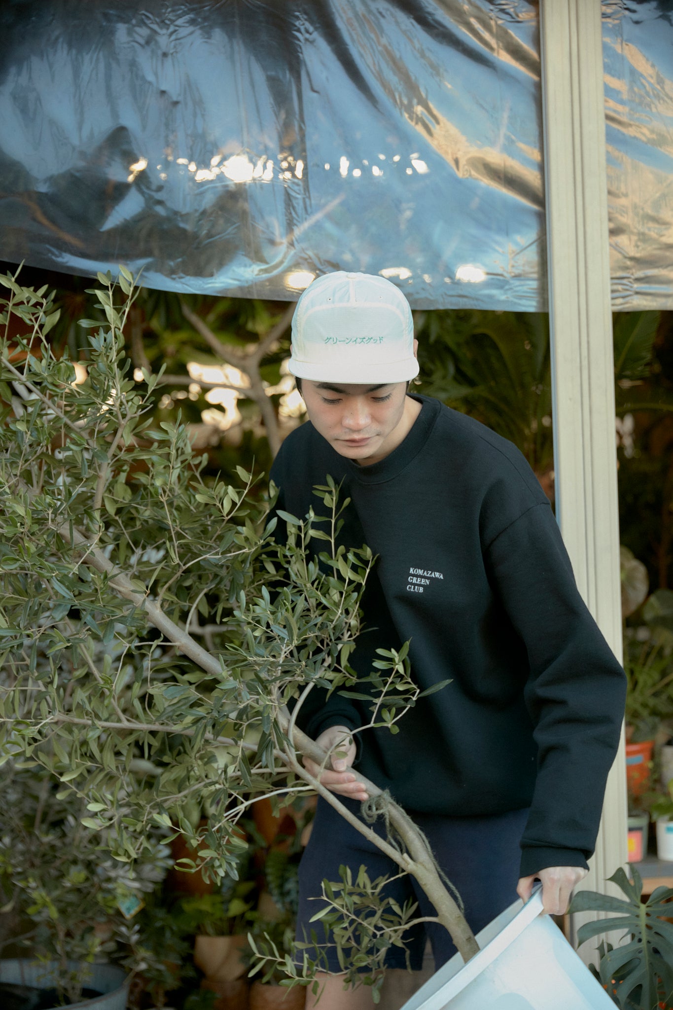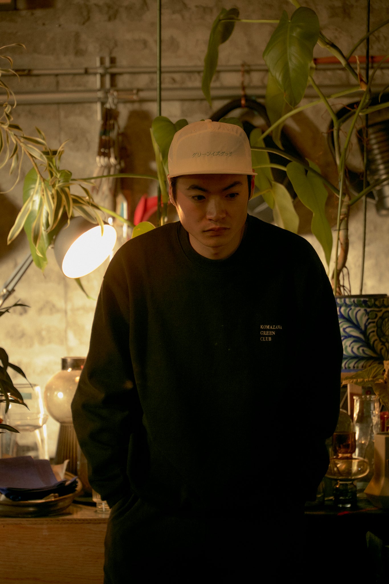 ”グリーンイズグッド”観葉植物が好きだ。私の部屋は植物だらけである。東京、駒沢大学にある観葉植物と古着のお店「SCENE」でオープン前に撮影をさせて頂いた。ボディはascolorの伝統モデルサーフキャップ。アイボリーにねずみ色の刺繍で合わせています。クレイジーパターンのジャケットは、ビンテージのL.L.Bean製、Rainbow Lake Jacket。